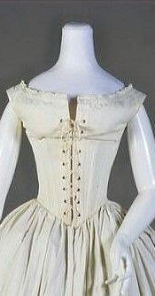 Thank goodness our story is set in 1843 and the corsets open at the front AND at the back, making things a lot easier for our heroine (who, SPOILER ALERT has neither maid nor husband). The split-busk corset, with a slot and stud closure, was patented in 1848 by Joseph Cooper but most people forget the idea and original design was invented by Jean-Julien Josselin in 1829, so it is very possible, if not likely, our heroine would be wearing one.